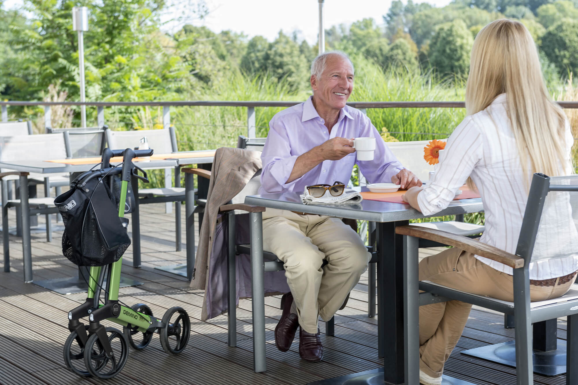 Looking for a lightweight rollator that stands out? A top-quality walking aid that will exceed your expectations when it comes to comfort, safety and design? Then look no further than the award-winning Gemino 30. The original 100% rollator comes in six attractive frame colours and offers lots of practical accessories to fit your active life – and personal style!