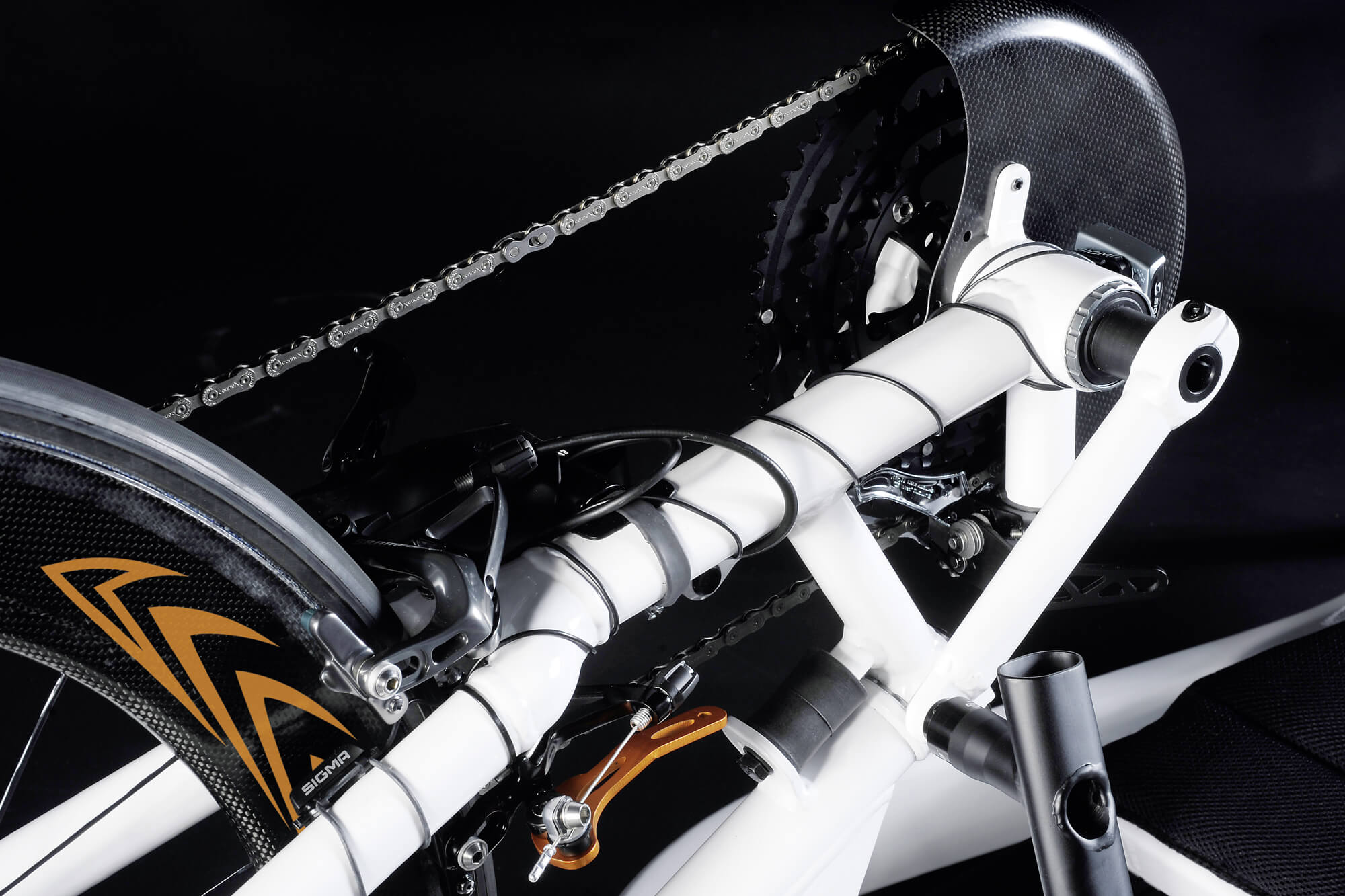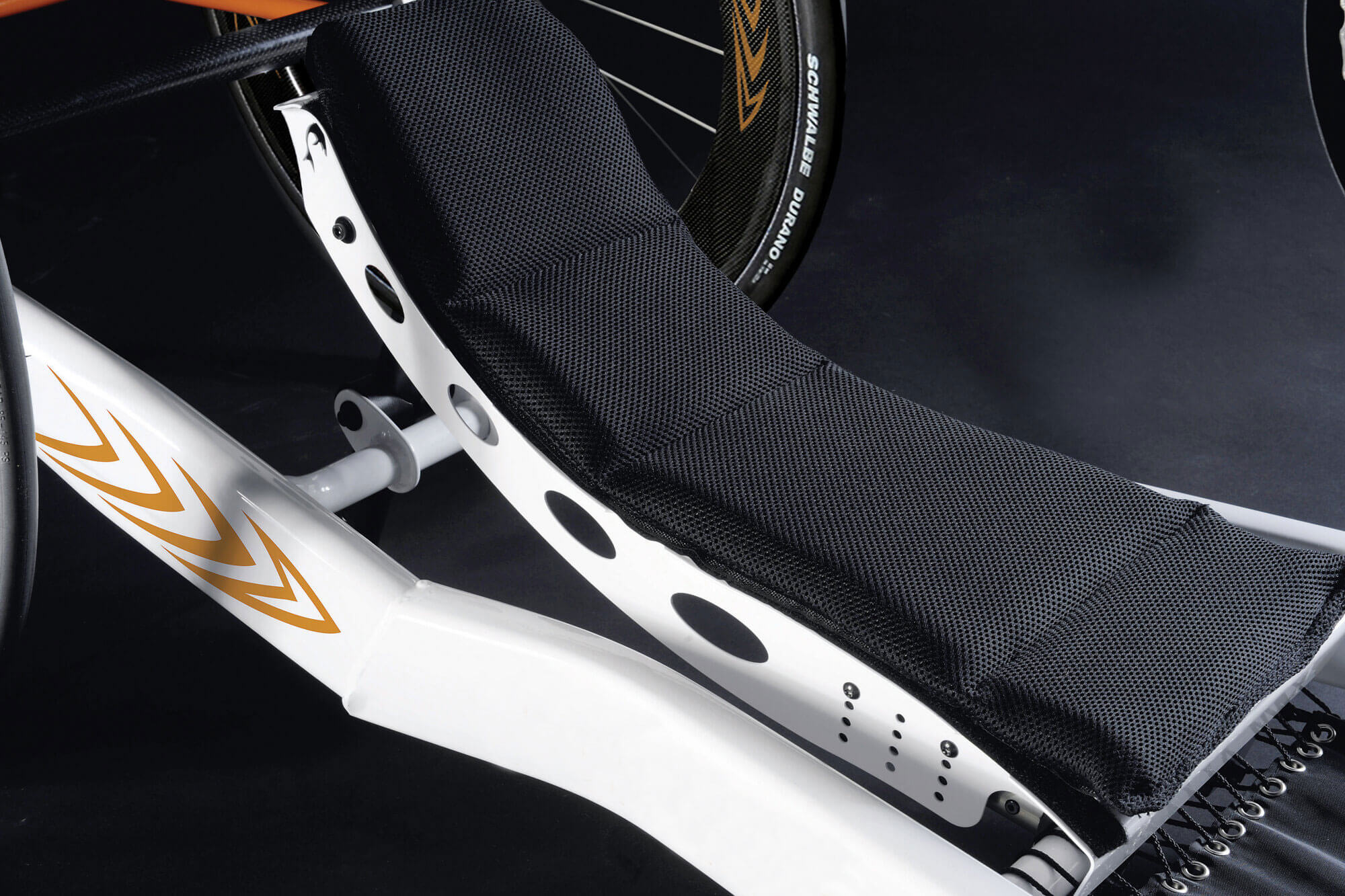 The new, innovative frame is designed to allow for the best individual positioning. Enclosing the driver, when force is introduced it's converted directly into propulsion. The low centre of gravity and wide wheelbase enables higher cornering speeds whilst maintaining maximum stability.